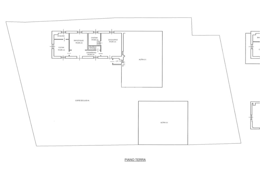 L'immobile è indipendente e la proprietà è completata da due importanti pertinenze disposte su due livelli per un totale di 400 mq circa di superficie accessoria. La strada che permette l'accesso alla proprietà è una strada chiusa che consente il passaggio per questa proprietà e soltanto altre due abitazioni.