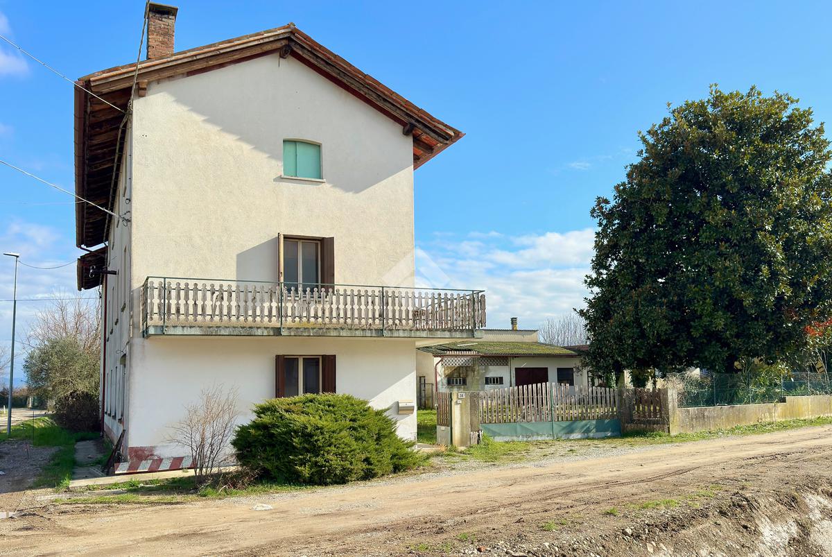 Il cancello di accesso è sia pedonale che carraio. Il lotto totale è di 1.300 mq circa e comprende oltre alla casa anche una vecchia stalla su due livelli e un capannone, un ex pollaio con altre piccole pertinenze.